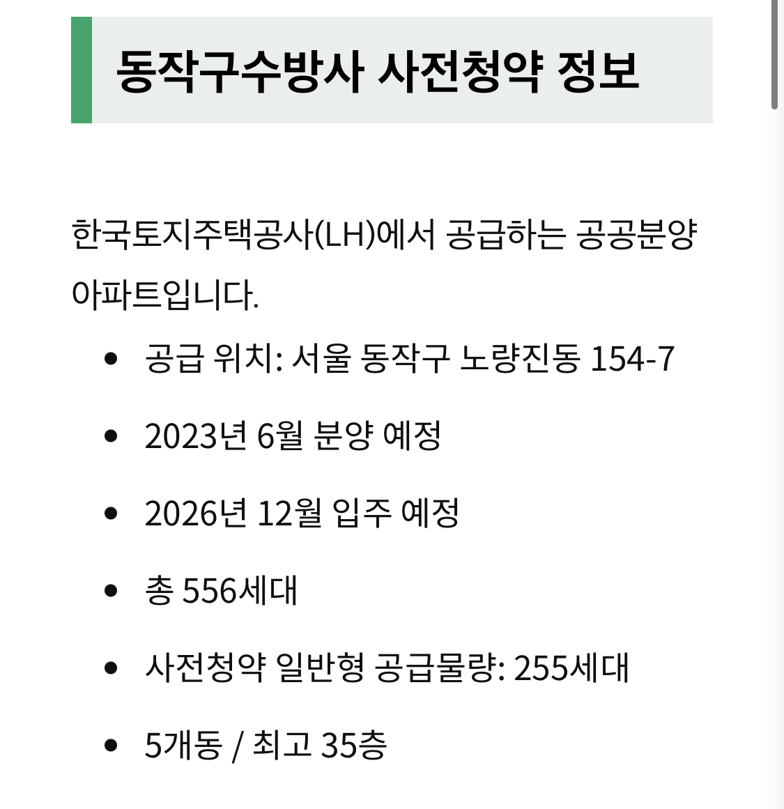 | 동작구 수방사 사전청약 분양가 모집공고 다운로드 청약일정 (0) | 2023.06.07 |